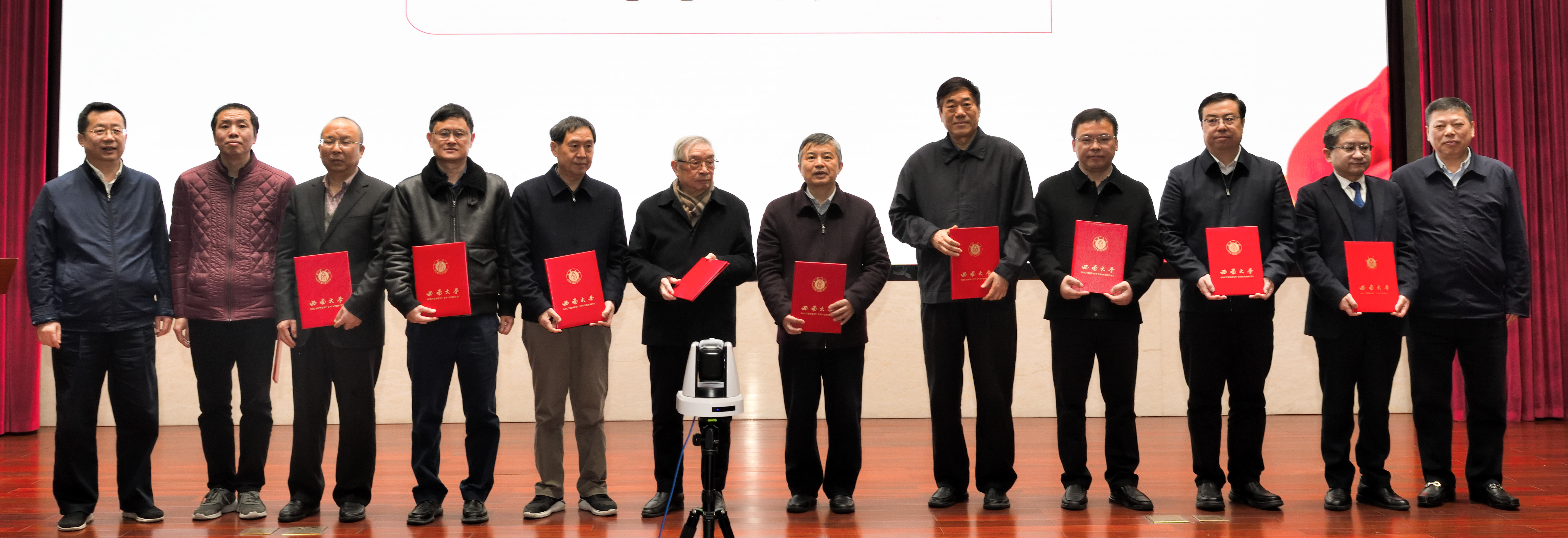 李旭锋书记在会上宣读了第一届学术委员会名单及实验室领导班子名单。张卫国校长、叶玉江副院长为学术委员会专家颁发聘书。
