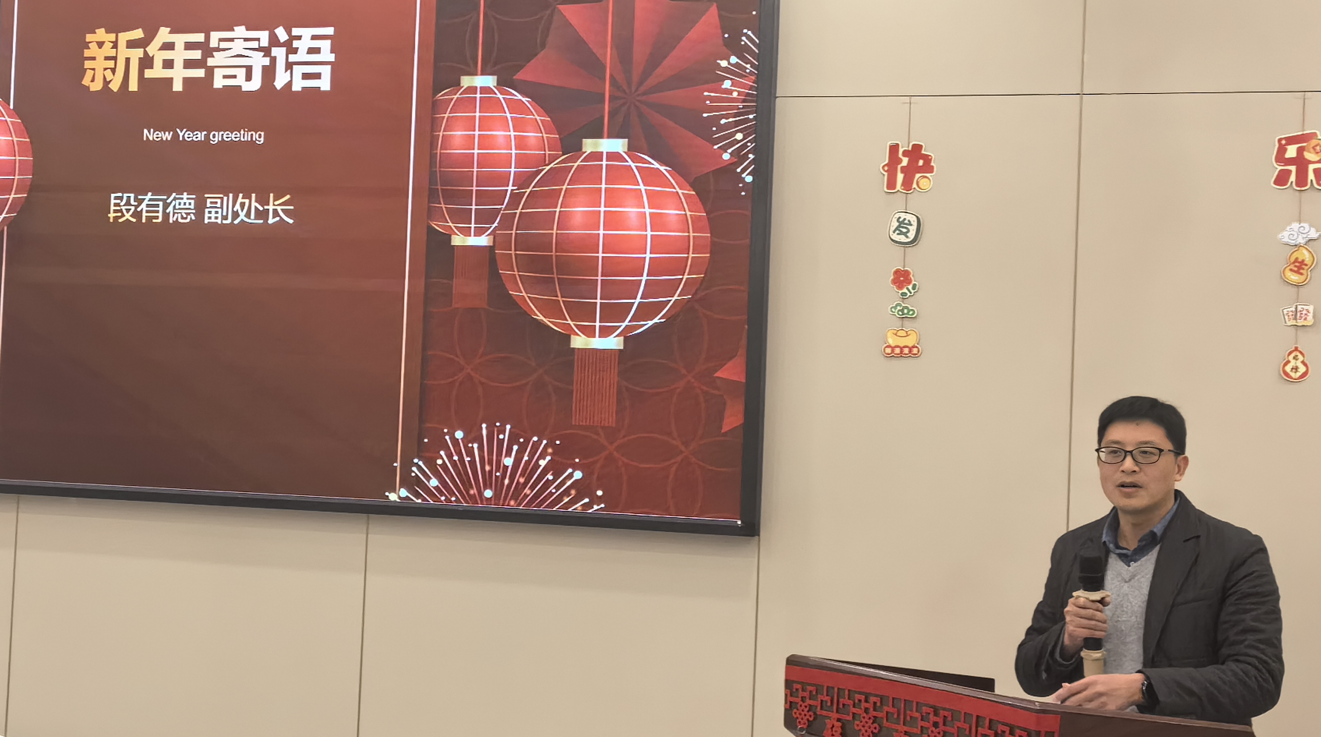 会上,代方银主任巧妙地以“说3道4,面向未来”为题作主旨发言,意在回眸2023,展望2024。他点击了实验室在刚刚过去的一年里在平台发展、科学研究、学科建设、人才引培、院室协同等方面取得的重要工作业绩,重点展示了在科技创新中取得的突出成果,向取得高亮业绩的教师和团队表示诚挚的祝贺,向所有教职工的辛勤付出表示衷心的感谢,并就高质量完成2024年的重点任务作了总体动员,期待“又是一个好年”。