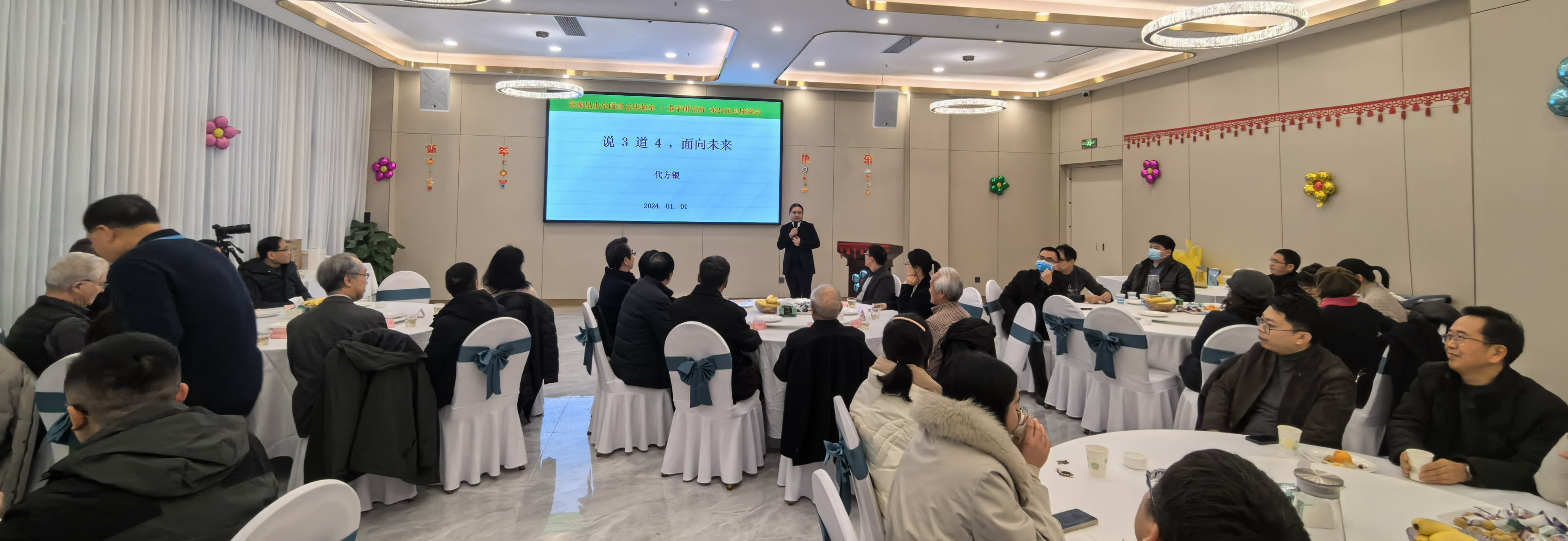 2024年1月1日,资源昆虫高效养殖与利用全国重点实验室/蚕学与系统生物学研究所举行以“回眸与展望”为要义的喜迎新年及工作动员座谈会。蚕学所全体教职员工参加,老中青几代蚕学人欢聚一堂,回顾过往,寄望未来。活动邀请了蚕桑纺织与生物质科学学院党政班子全体成员、国家级人才,学院退休老领导代表吴大洋教授,西塔学院院长谢洁教授,学校科学技术处代表段有德副处长,来室合作交流的法国专家Eric Westhof院士、日本专家嶋田透教授等一同参加。座谈会由实验室副主任何宁佳教授主持。