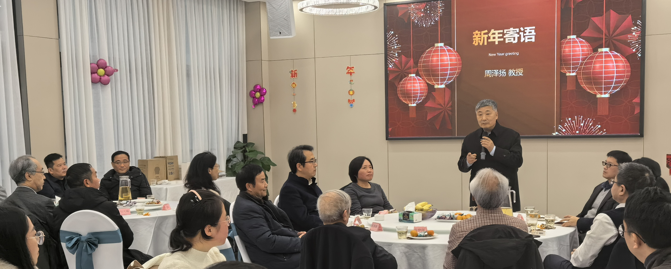周泽扬教授发表新年寄语。他感怀在向院士带领下,昔日筚路蓝缕,勇涉险滩,坚守方向,一切来之不易;强调今天要守正创新,坚持团结,保持协调。他勉励老师们以时不我待、砥砺奋进的精神状态,接续奋斗,再创辉煌,并衷心祝愿大家新年快乐,幸福安康,共赴美好而崭新的春天。