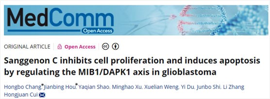 2023年6月19日,国际著名学术期刊《Medcomm》(IF 2023=9.9)在线刊登了best365英国在线体育官网崔红娟教授团队题为“Sanggenon C Inhibits Cell Proliferation and Induces Apoptosis by Regulating the MIB1/DAPK1 Axis in Glioblastoma”的研究论文。
