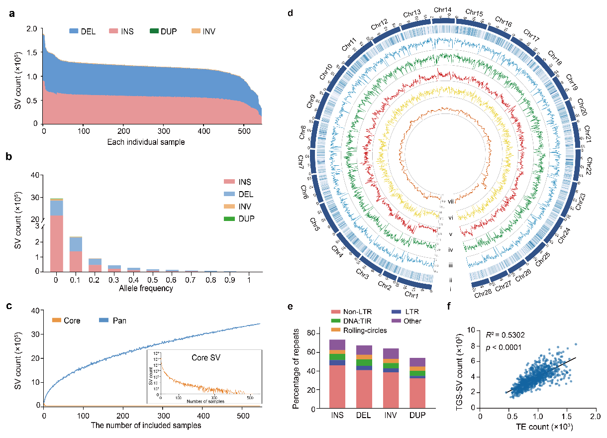 图3. 545个蚕基因组的结构变异特征