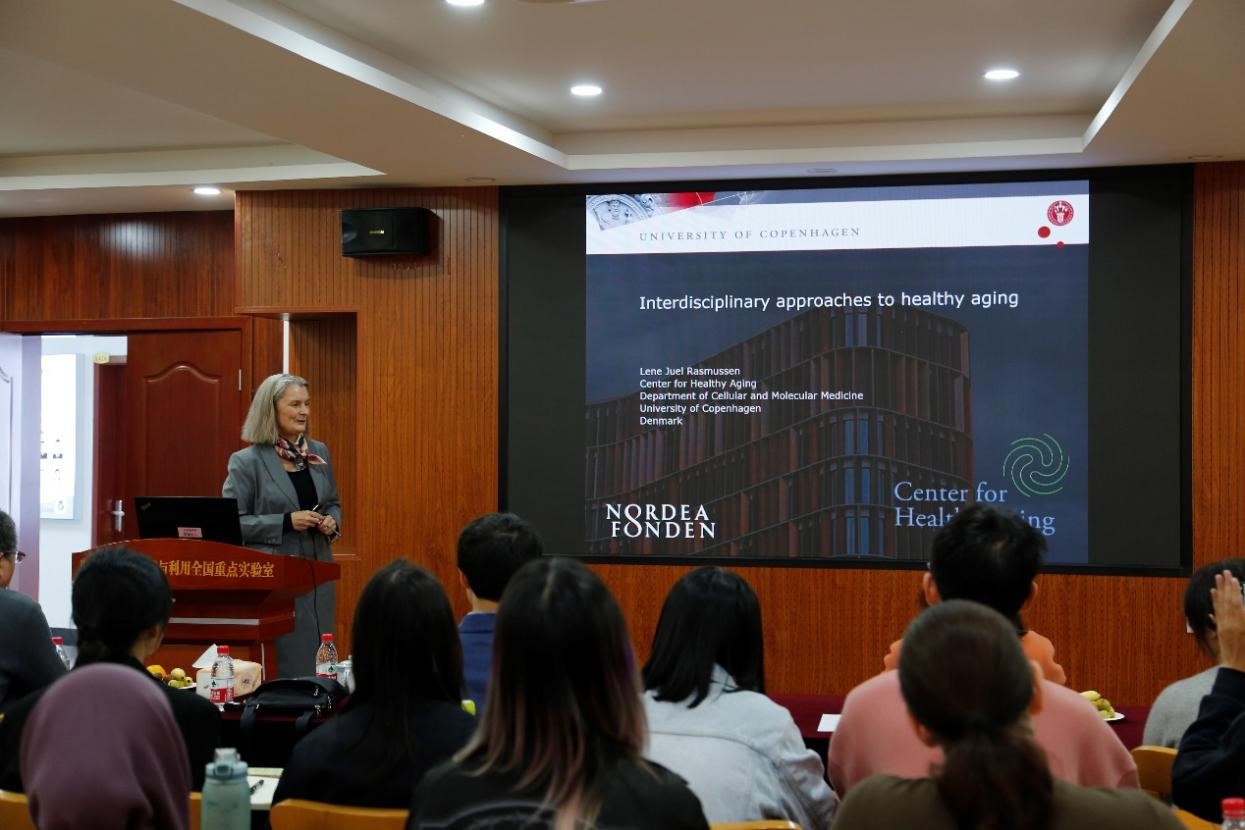 期间,分别举行了Lene Juel Rasmussen院士专题学术报告会、双边青年学术交流报告会。Lene Juel Rasmussen院士做了题为“Interdisciplinary approaches to healthy aging”的学术报告,并围绕线粒体功能紊乱、基因组不稳定性、DNA修复和健康老龄相关问题与参会师生进行了深入讨论和交流。