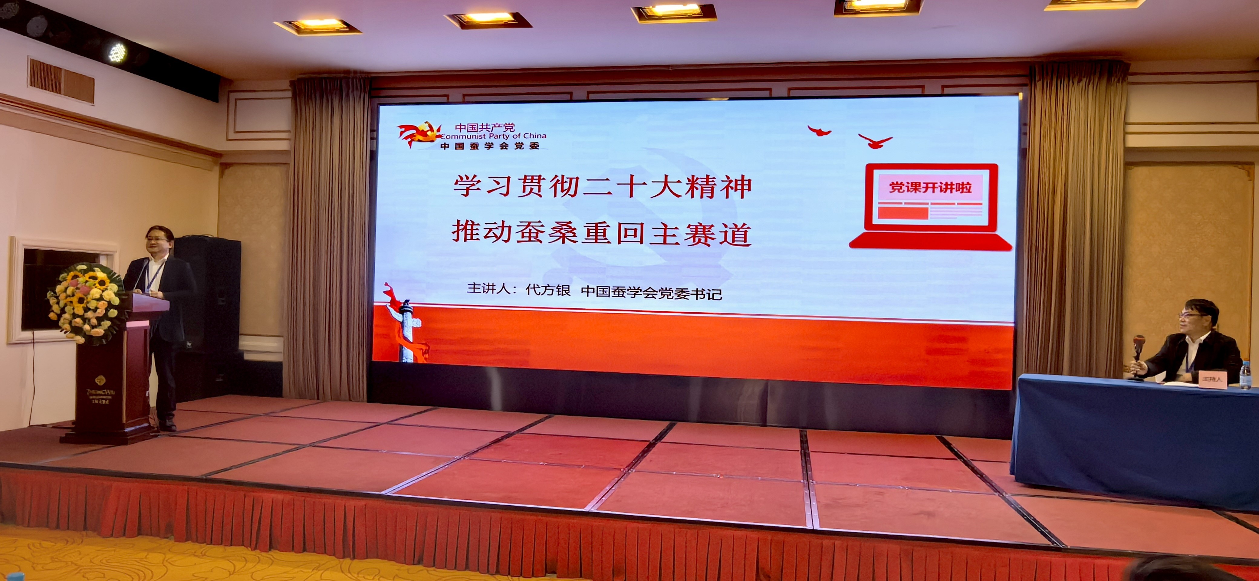 理事会上,中国蚕学会党委书记代方银理事长讲授“学习贯彻二十大精神,推动蚕桑重回主赛道”专题党课,阐述了精准把握党的二十大精神指引、弘扬“丝路精神”凝心聚力强根本、践行“干字精神”务实笃行向未来三方面内容,强调蚕业科技工作者要以推进高水平科技自立自强和产业高质量发展为使命,切实服务国家战略和经济建设主战场,在新时代新征程上奋力谱写干事创业的崭新篇章。党课报告引起了参会人员的共鸣。