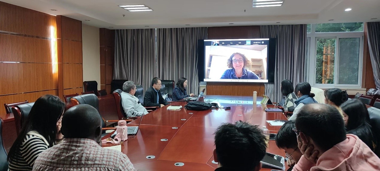 Dr. Bryony Williams以“EHP and its relatives” 为题的报告,介绍了团队在对虾微孢子虫EHP的比较基因组学分析和病原溯源方面的新进展。“Glugeida species as model systems” 为题的报告,介绍了Glugeida属微孢子虫作为开展病原侵染装置结构解析、增殖机制研究及病原与宿主相互作用等方面的优势。此外,Dr. Bryony Williams还介绍了针对欧洲资源昆虫微孢子虫感染情况的调查研究。参会师生围绕微孢子虫比较基因组与功能基因组学、传播途径、侵染结构等方面与Dr. Bryony Williams进行了热烈的讨论。潘国庆研究员指出这是一次非常有意义的友好学术交流,并将与Williams教授及其团队继续保持长期的友好交流。