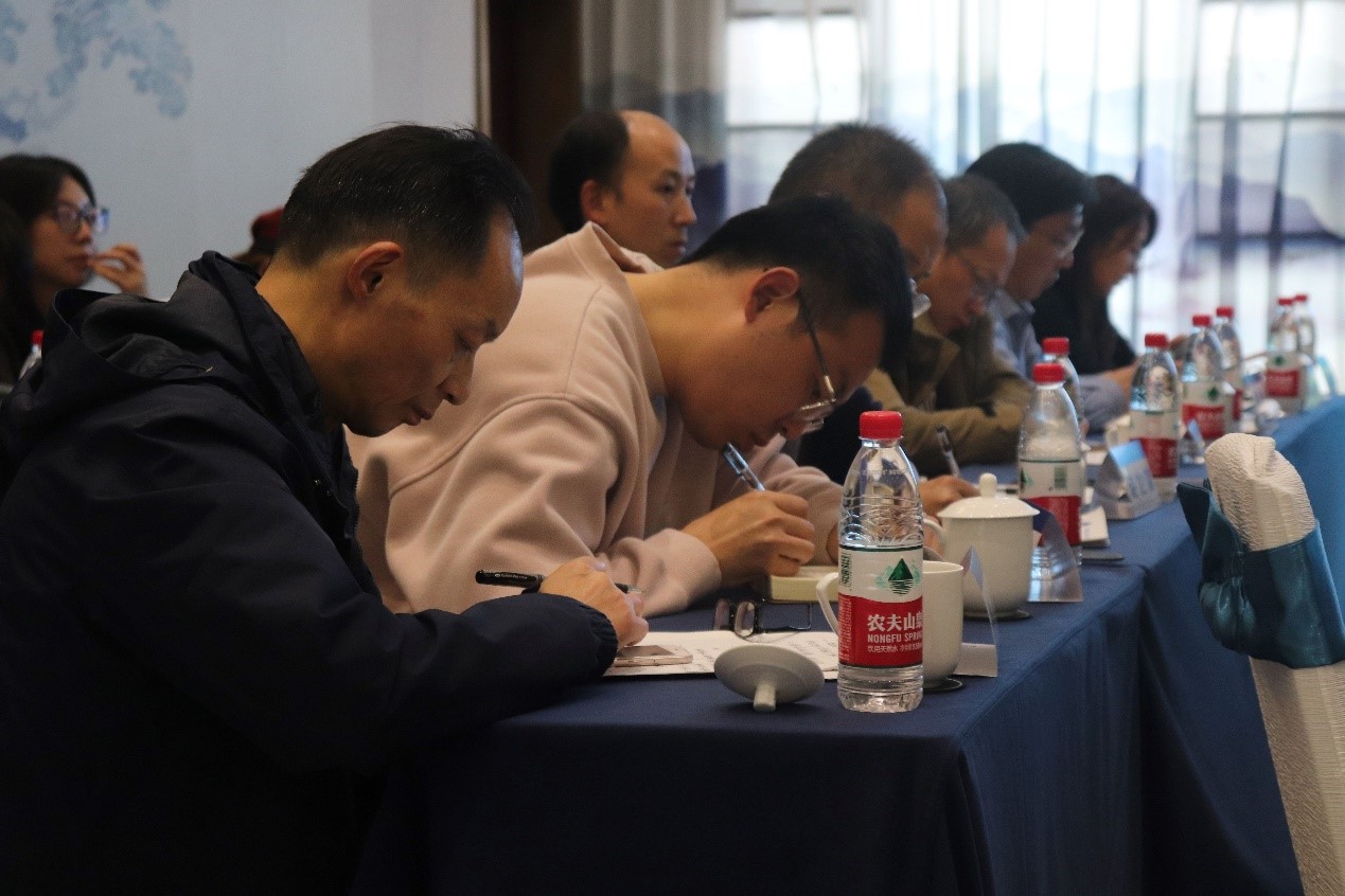 重庆市黔江区林业局副局长潘国权、巫溪县林业局副局长吴成林、涪陵区经作中心研究员孙波、大足区埂生基生态农业有限公司总经理倪蓓华、潼南区农业科技推广站站长郭湘、云阳县农业技术服务中心副主任向晓峰、奉节县林业局农艺师刘奎、重庆汇田机械制造有限公司董事长张益佳分别介绍了各区县蚕桑产业的基本情况、存在问题和主要诉求,或企业技术研发情况。重庆市蚕桑产业技术体系及相关部门积极响应,做到“有疑必答,有惑必解”,并将采取相关措施推动各区县蚕桑产业的高质量发展。随后,重庆市蚕业总站余华献副研究员代表市蚕业总站站长、市蚕业技术体系前任首席专家王万华研究员发表指导讲话。对接交流由赵爱春教授和王庆一级调研员先后主持。