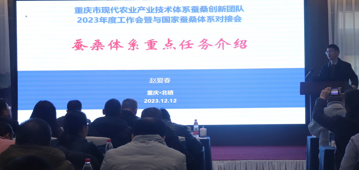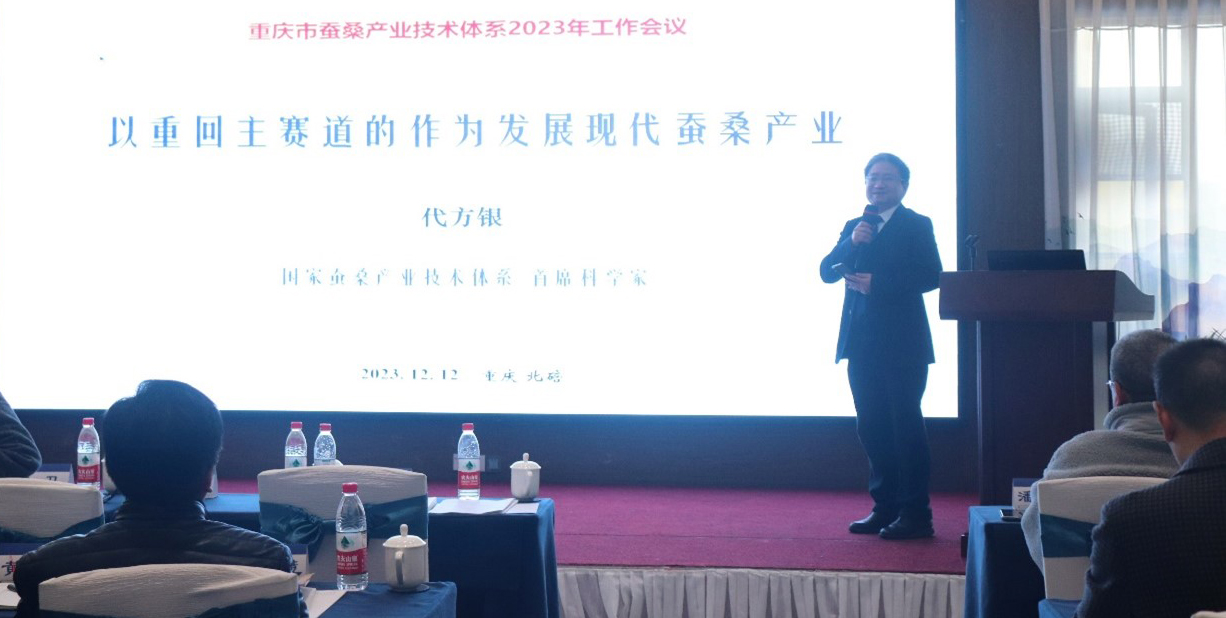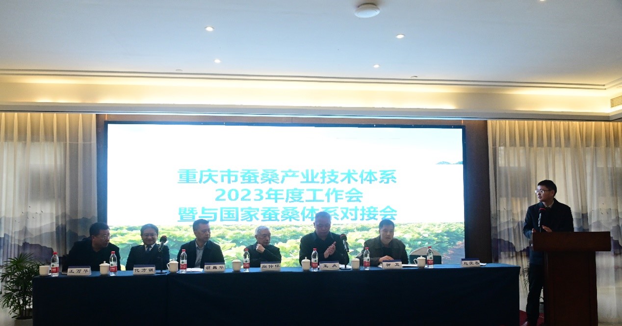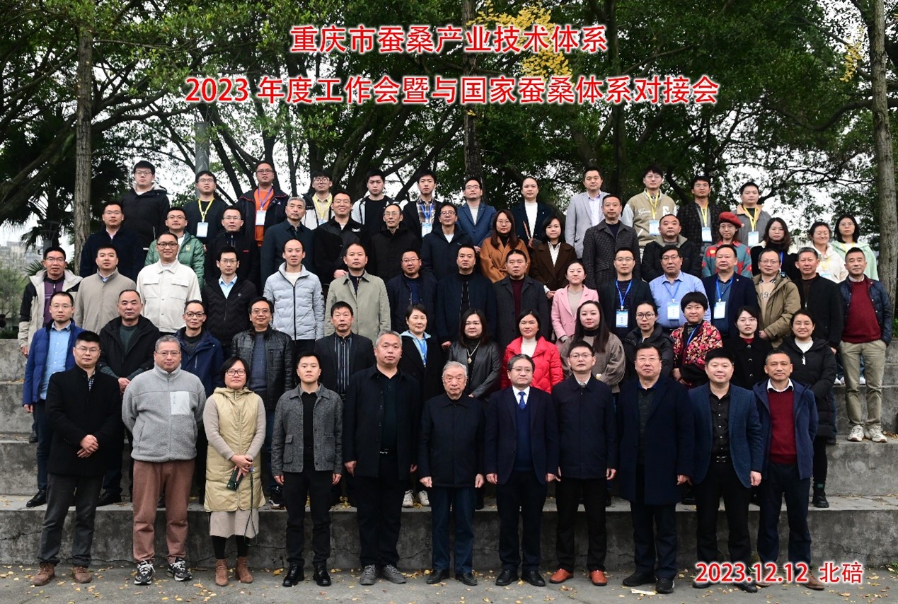 为加强重庆市蚕桑产业技术体系的建设,推进重点任务落实落细,并加强与国家蚕桑产业技术体系的协作,有效对接市内蚕业相关部门,更好服务全市蚕桑产业高质量发展,重庆市蚕桑产业技术体系、资源昆虫高效养殖与利用全国重点实验室于12月11-13日在重庆北碚召开了重庆蚕桑产业技术体系2023年度工作会暨与国家蚕桑产业技术体系对接会。会议举行了开幕式、市体系任务介绍与工作进展汇报、专题报告、对接交流、参观考察等活动。重庆市农业农村委员会、重庆市商务委员会及best365英国在线体育官网有关部门负责人,国家蚕桑产业技术体系首任首席科学家向仲怀院士、现任首席科学家代方银教授以及在渝在聘岗位科学家,重庆市蚕桑产业技术体系各功能室、试验站负责人及技术骨干,重庆市蚕业总站、市蚕桑主产区县蚕业主管部门以及企业代表,共计70余人参会。
