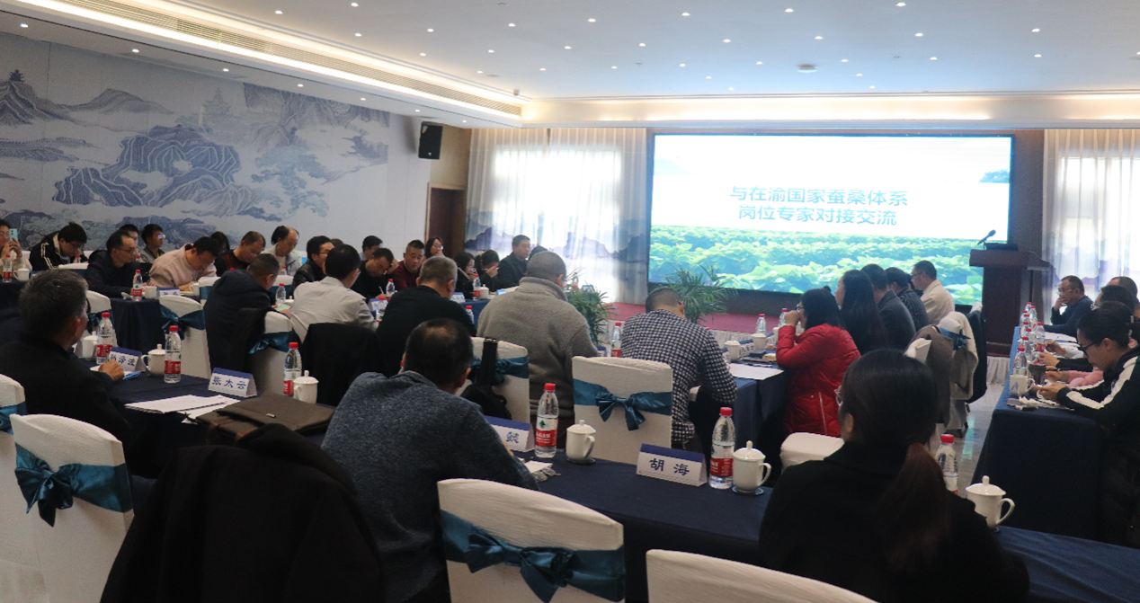 对接交流活动,包括与国家蚕桑产业技术体系对接交流、与各区县蚕业主管部门及相关企业对接交流,主要聚焦“重庆蚕桑如何高质量发展”和“重庆各区县蚕业发展科技需求”两大方面。国家蚕桑产业技术体系岗位科学家潘敏慧教授提出重庆市蚕桑产业要加强在“健康养殖,绿色防控,快速检测,全面调查”等方面的工作,同时就新技术养蚕需要注意的重点与大家进行了深入的交流。国家蚕桑产业技术体系岗位科学家黄先智老师指出要破解目前“研发水平高,可用技术少”的问题,技术创新性、系统性、规范性和应用性仍需加强,与大家就技术转化、桑枝处理、桑叶饲料化等问题进行了热烈的讨论。童晓玲教授针对产业的痛点和需求,提出要将实验室的成果尽快熟化转化,真正地因地制宜、面向多元需求加快桑、蚕新品种培育和推广。与会各专家和代表就提出的问题进行热烈讨论,沟通交流相关宝贵经验。