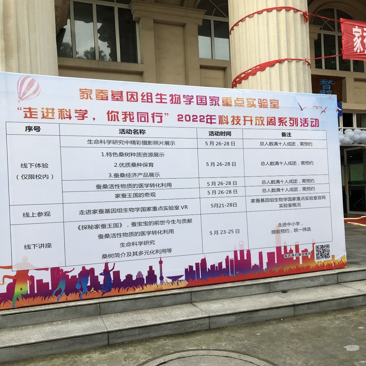 根据科技部和重庆市科技局相关安排,家蚕基因组生物学国家重点实验室于5月21-28日开展了“2022年科技开放周”系列活动,开放周的主题为“走进科学 你我同行”,开放周期间实验室举行了系列科普开放活动和大型科普讲座,并向公众免费开放,科技开放活动圆满成功。