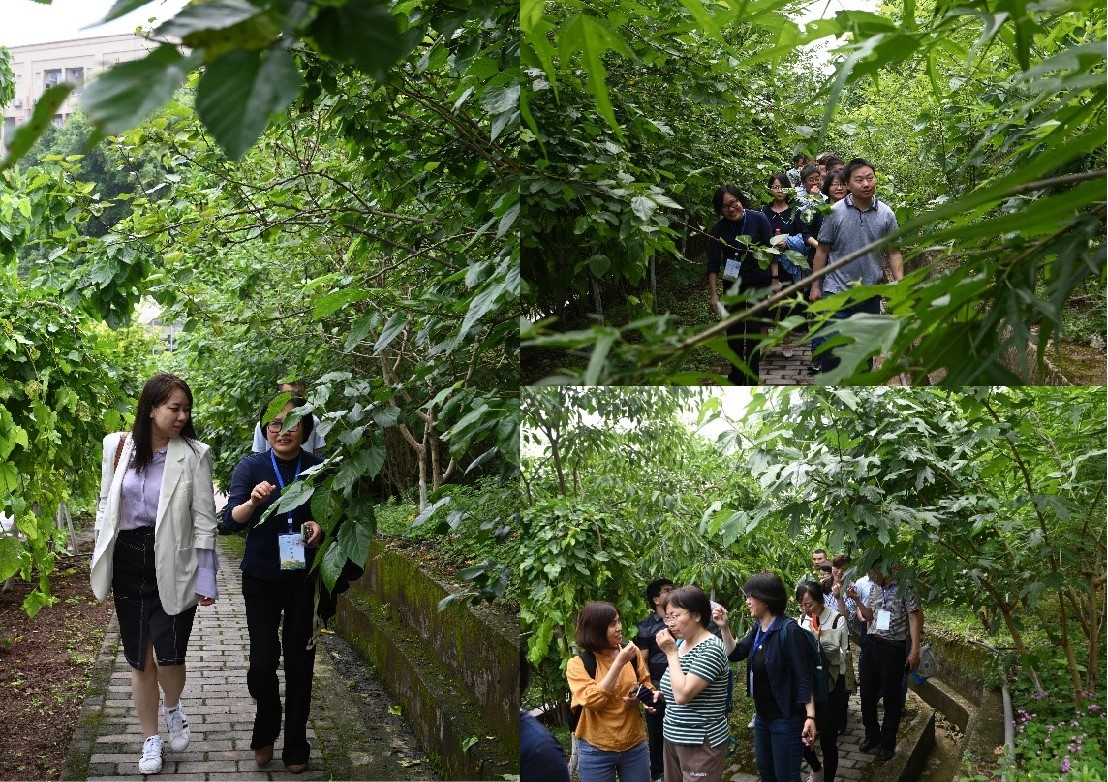 会后,与会代表们在何宁佳教授的带领下参观了国家桑树品种改良中心重庆分中心的桑树种质资源圃,近距离了解了桑树的品种多样性及生物学特征。