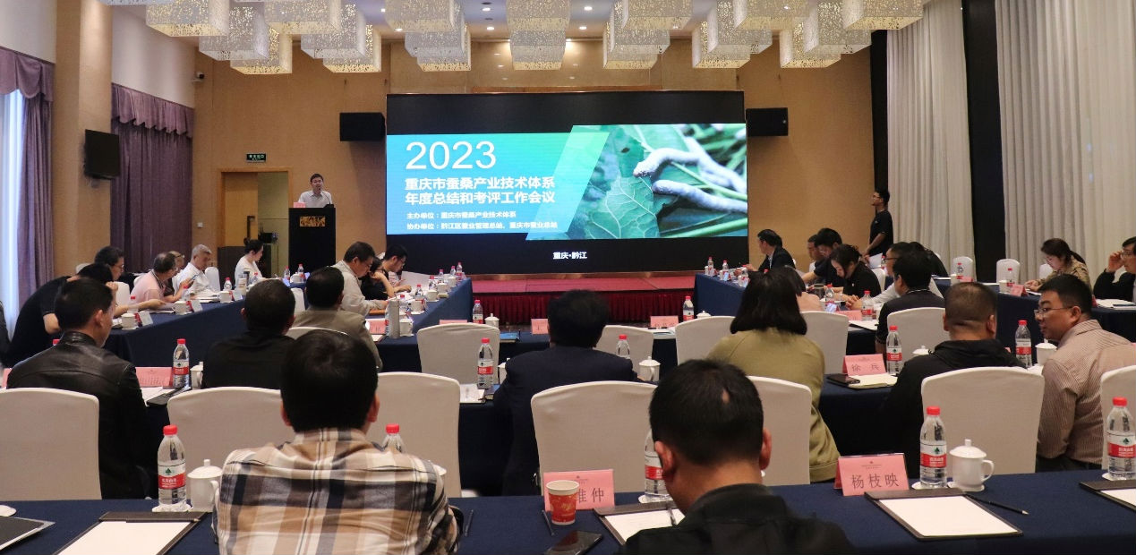 为深入贯彻“两会”精神,推动蚕业新质生产力发展,4月16日,重庆市蚕桑产业技术体系在黔江召开2023 年度总结和考评工作会,全面总结过去一年的工作成果,考评各功能研究室、推广试验站工作完成情况,开展服务产业对接活动,制定2024 年度目标任务。重庆市商务委员会市场体系建设处一级调研员王庆、四级调研员袁徐宏,重庆市蚕业总站站长蒋贵兵、副站长余华献,重庆市蚕业科学技术研究院书记熊本华,黔江区林业局三级调研员周春林等出席会议。6个研究室、4个推广试验站及在黔企业代表共40余人参会。资源昆虫全国重点实验室赵爱春教授(市蚕桑体系首席专家)、潘国庆教授、李春峰教授,以及蚕桑纺织与生物质学院王茜龄教授、邹云龙副教授、敬成俊高级实验师等参加会议。