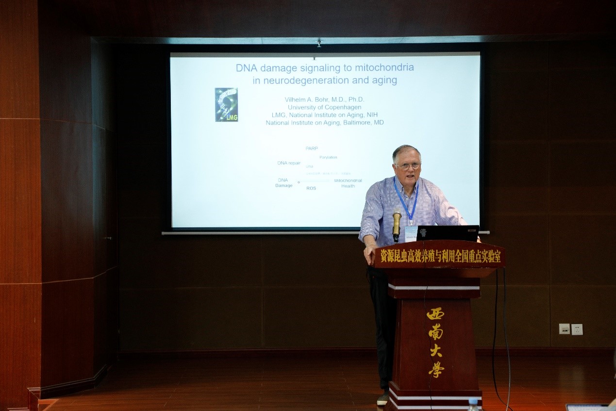 6月18日上午,Vilhelm A. Bohr院士在蚕学宫报告厅作了题为“DNA damage signaling to mitochondria in neurodegeneration and aging”的学术报告。与会师生就衰老与神经退行性疾病中DNA修复与线粒体、NAD+的角色和作用展开了热烈探讨和交流。