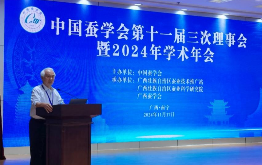 2024年11月16-18日,由中国蚕学会主办,广西壮族自治区蚕业技术推广站、广西壮族自治区蚕业科学研究院、广西蚕学会承办的中国蚕学会第十一届三次理事会暨2024年学术年会在南宁市召开,来自国内有关高校、科研院所、企业、生产推广等单位的280余位代表参加会议。广西壮族自治区农业农村厅党组成员、副厅长韦波,中国蚕学会理事长代方银分别在开幕式致辞。中国蚕学会名誉理事长鲁成、常务副理事长李木旺、监事长廖森泰,副理事长李喜升、肖更生、周谦、董占鹏,秘书长刘利等出席会议。大会开幕式由常务副理事长李木旺主持。
