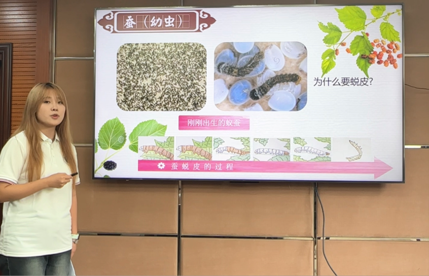 当天上午“春蚕到死丝方尽——探秘家蚕的一生”线上直播课准时开播。best365英国在线体育官网蚕桑丝绸科普队队员以直观易懂的方式,带领观众追溯了家蚕从卵孵化、历经幼虫、蛹到破茧成蝶的完整生命历程,生动解答了“蚕如何吐丝成茧”“生命如何完成华丽蜕变”等疑问,让观众近距离感受家蚕生长的奇妙过程,还深入解读了家蚕背后的历史与科学价值。从6000年前我国开启栽桑养蚕活动,到先秦时期蚕桑生产成为古代农业重要支柱,再到西汉“丝绸之路”因丝绸贸易联通世界、影响文明格局,家蚕对人类历史的深刻影响被一一呈现。