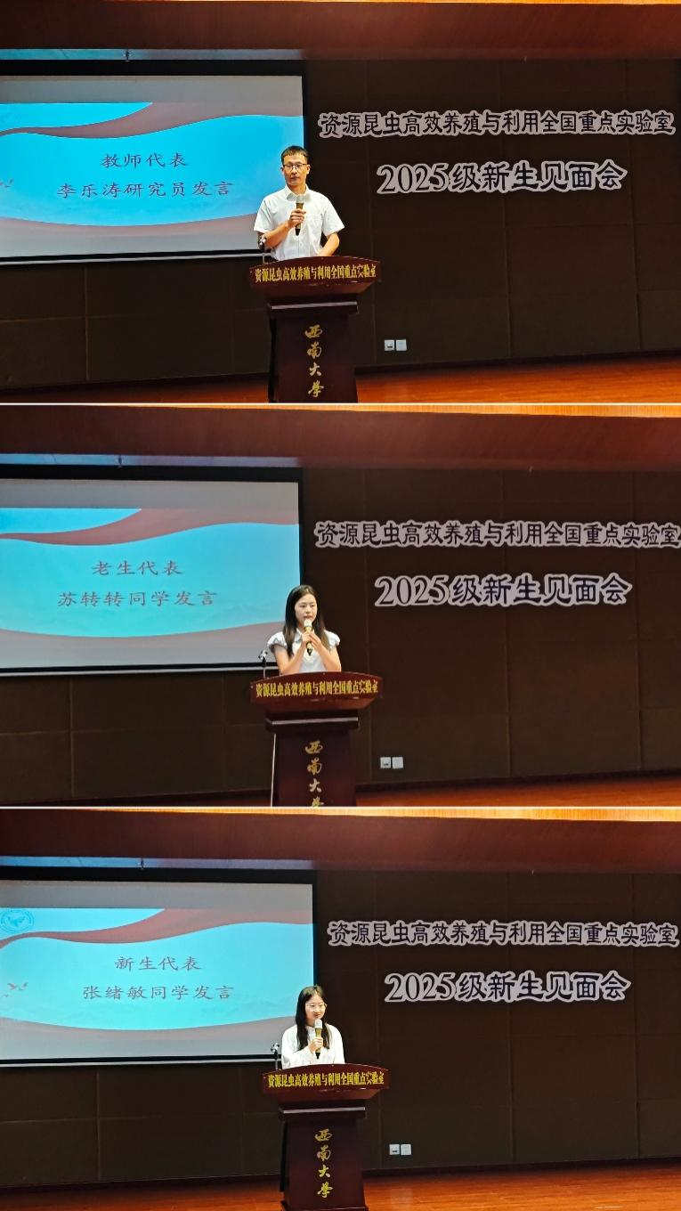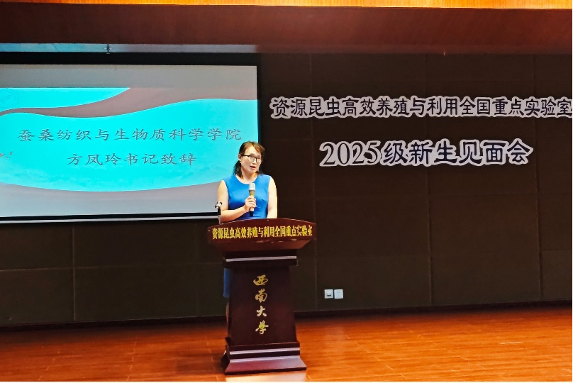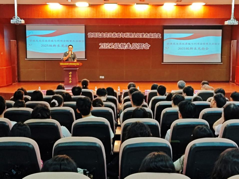 9月16日上午,best365英国在线体育官网资源昆虫高效养殖与利用全国重点实验室2025级研究生新生见面会在蚕学宫报告厅举行。中国工程院院士向仲怀教授,蚕桑纺织与生物质科学学院党委方凤玲书记,实验室主任、蚕桑纺织与生物质科学学院院长代方银教授,实验室副主任何宁佳教授,导师代表崔红娟教授、潘国庆教授、李乐涛研究员等出席本次见面会。会议由实验室副主任程廷才教授主持。