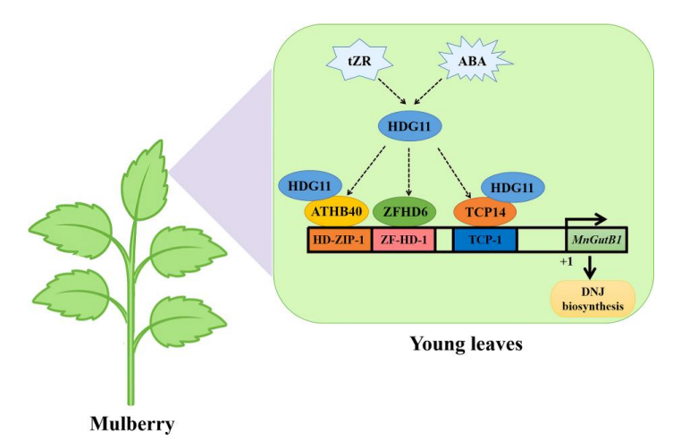 该项研究首次揭示了植物激素信号如何通过复杂的转录调控网络,精准控制桑树DNJ的组织特异性与发育时序积累,提出了一个“HDG11→(ZFHD6/TCP14/ATHB40)→MnGutB1DNJ产量”的完整调控模型。这一发现不仅为深入理解亚氨基糖代谢提供了关键线索,也为通过分子育种或合成生物学实现高产DNJ新品系构建、天然药物资源提升提供了理论支撑。